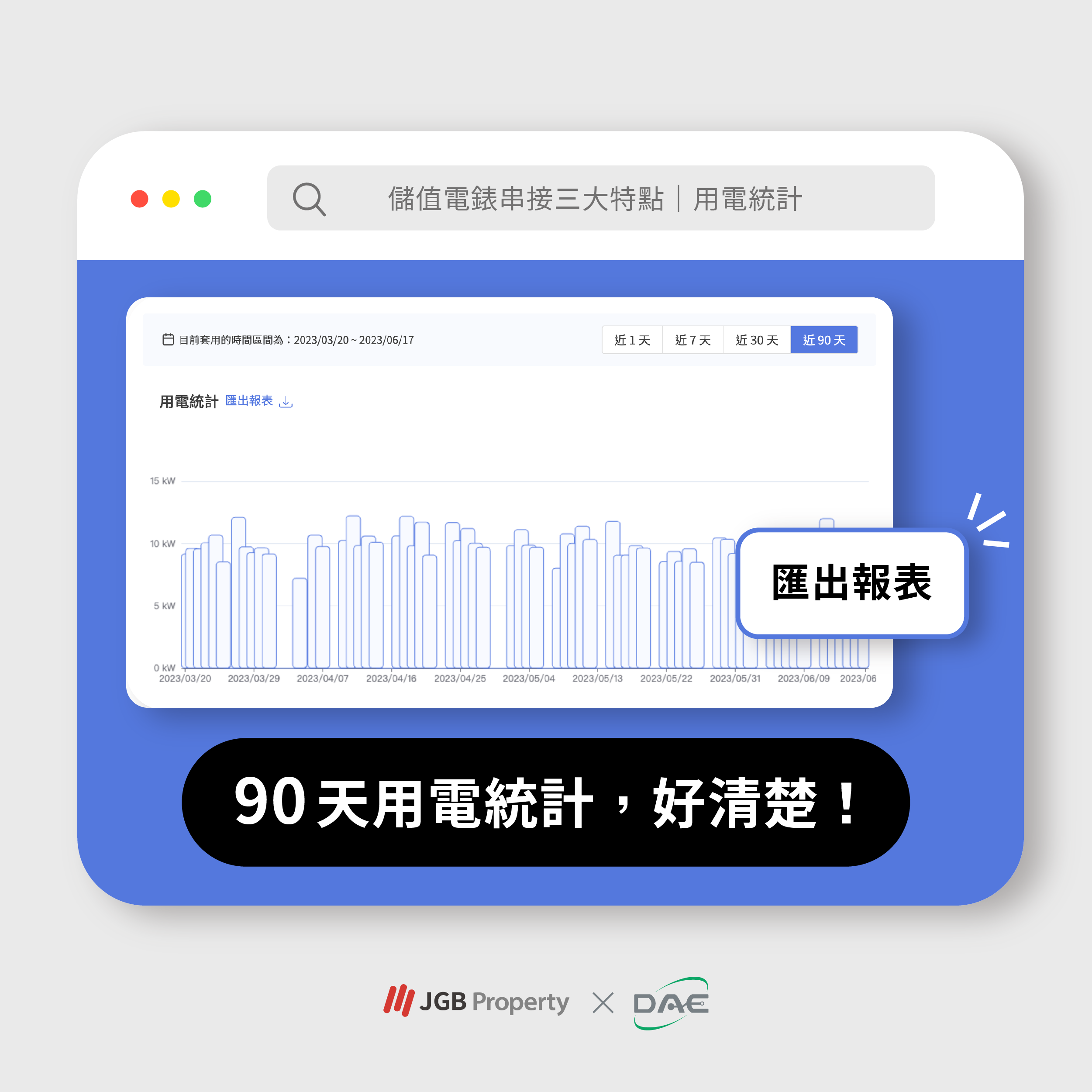 在JGB的裝置管理中串連的智慧電錶,將可以回朔90天的用電數據,明確的用電統計,讓管理者與租客都可明確知曉,用電的的數據,減少用電費用所產生的爭議。
